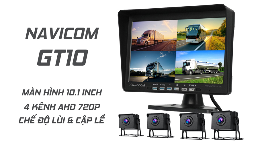 Navicom GT10 có tới 4 camera lắp đặt quanh xe và có thể ghi hình đồng thời 4 kênh với độ phân giải mỗi kênh là HD720P, và với tính năng trợ sáng ban đêm giúp cho video được rõ nét ngày trong điều kiện ánh sáng ban ngày hay ban đêm.