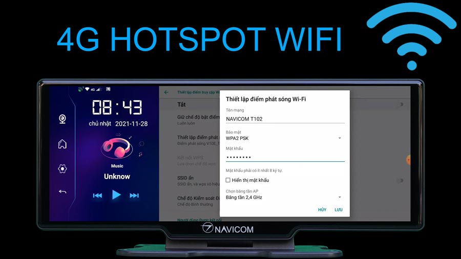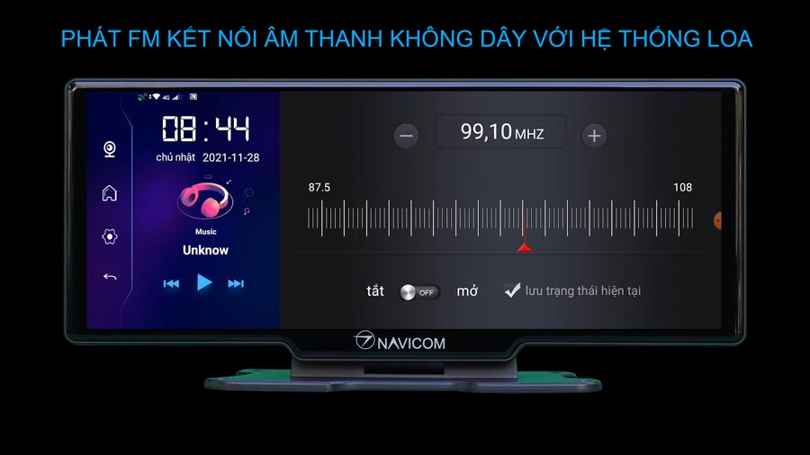 Navicom T102 là chiếc camera hành trình đặt taplo kiêm màn hình giải trí trung tâm kiêm camera giám sát xe từ xa: