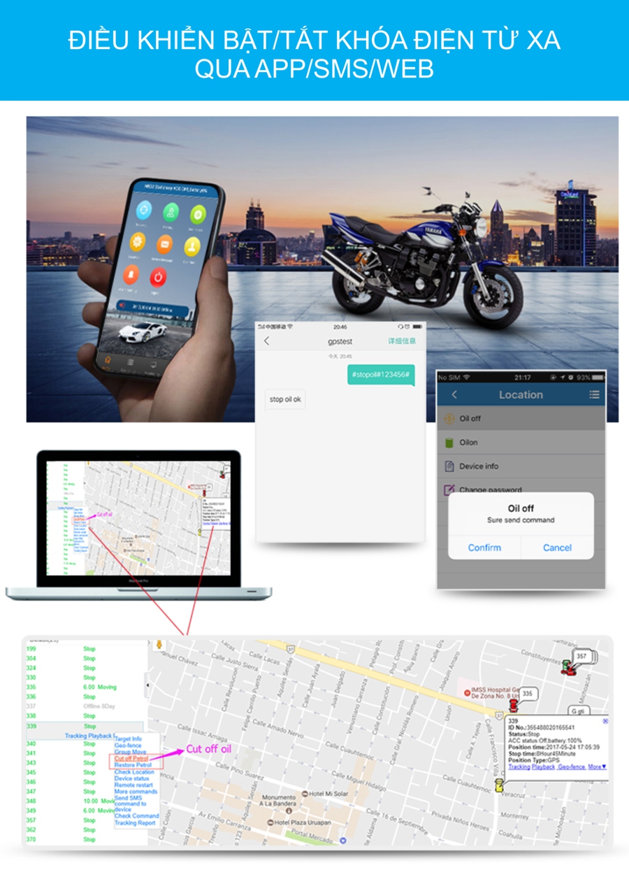 + Trạng thái xe bật/tắt khóa điện, chạy/dừng/đỗ xe