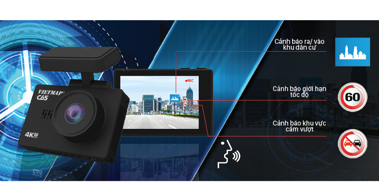 - Cảnh báo thông tin giao thông bằng giọng nói: Camera có khả năng cảnh báo giới hạn tốc độ trên từng cung đường, cảnh báo biển báo, cảnh báo khu vực có camera giao thông, …