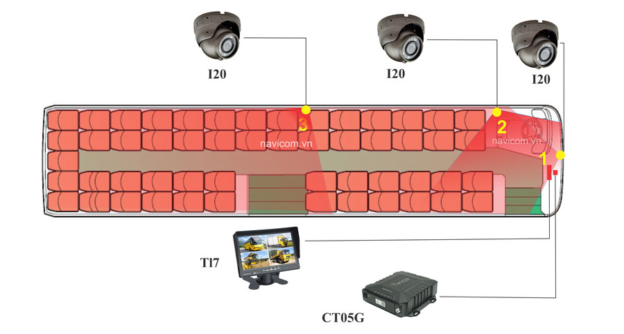 Hệ thống 3 camera giám sát hợp chuẩn NGHỊ ĐỊNH 10 cho xe khách - bus trên 30 chỗ Navicom HT03-ND10 ổ cứng gồm: