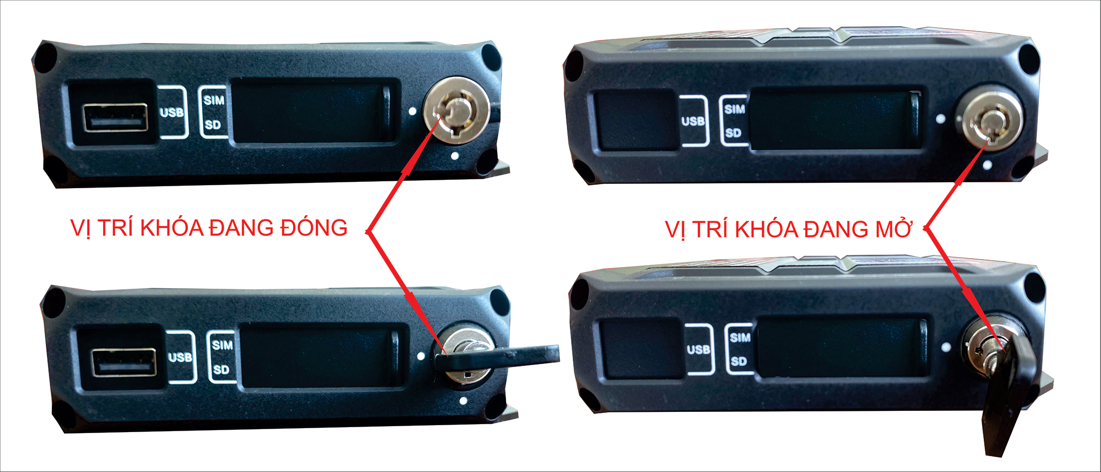 - Lắp sim, ổ cứng/thẻ vào đầu ghi, lắp ăng-ten GPS, Ăng-ten 4G và đặt tại vị trí trên mặt taplo dưới kính chắn gió trước, cắm rắc kết nối tới các camera. Sau đó khóa đầu ghi lại