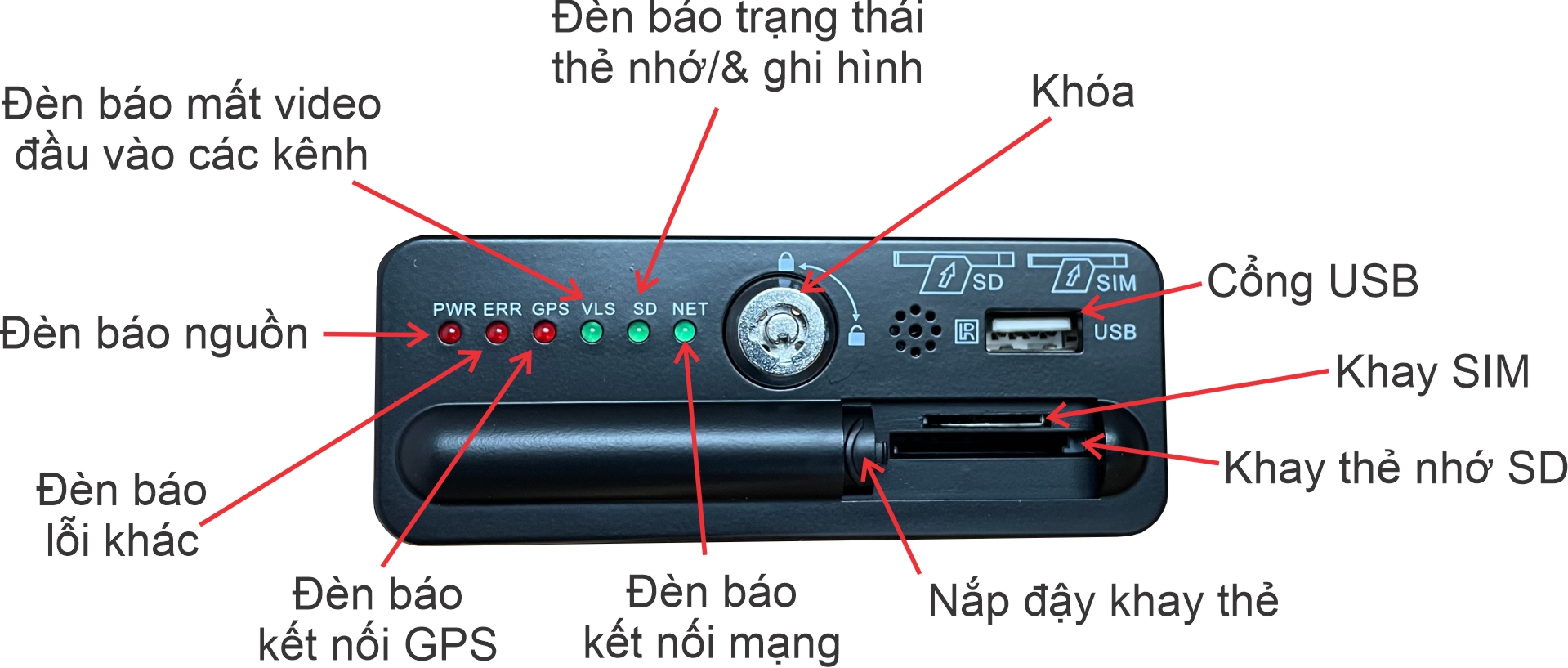 - Không sáng = chưa nhận thẻ nhớ => kiểm tra lại thẻ/ổ cứng. Phải đảm bảo thẻ nhớ/ổ cứng chính hãng