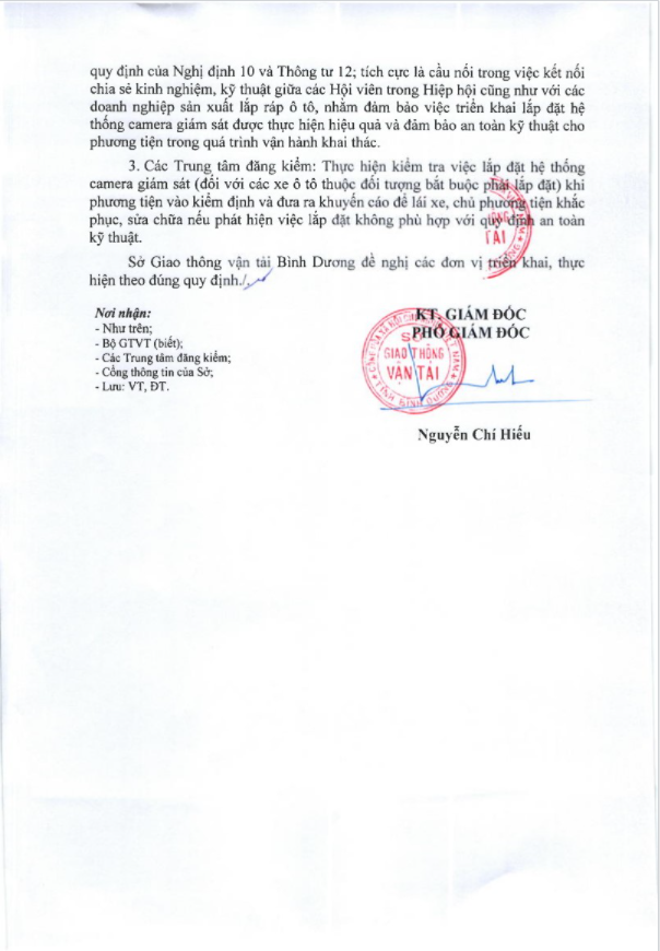 Ngày 24/12/2020 Sở Giao thông vận tải tỉnh Bình Dương đã ra công văn số 5172/SGTVT_VTPT&NL về việc lắp camera trên phương tiện vận tải đường bộ theo Nghị định 10 và Thông tư 12.