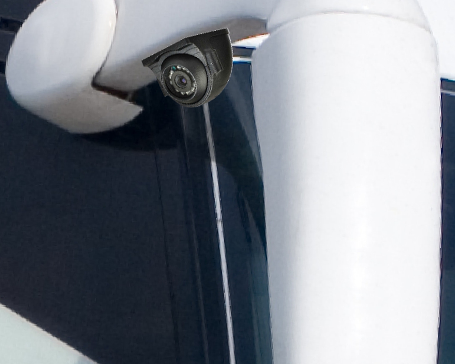 - Vị trí sườn xe nên chọn loại camera ốp dưới chân gương trước cửa bên ngoài xe có chống nước, chịu nhiệt chống rung bao quát các vị trí bên ngoài cửa lên xuống, khu vực cửa khoang hàng hóa